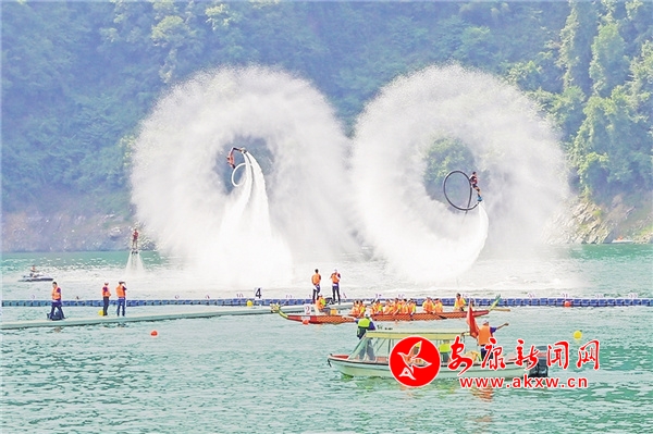 2019年,第十九屆安康龍舟節(jié)系列活動(dòng)之瀛湖翠屏島水上表演。汪德珍 攝