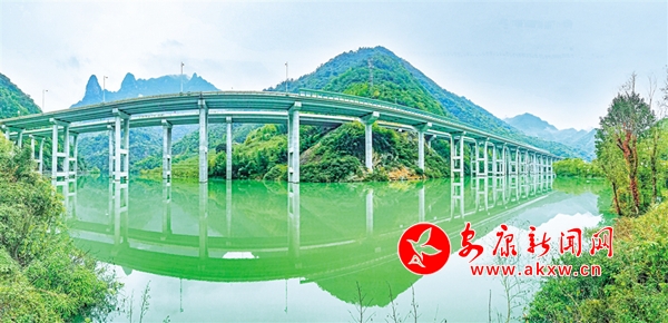 安康至嵐皋高速路段全長47.414公里,起于漢濱區(qū)建民鎮(zhèn)忠誠村,設(shè)樞紐立交與十天高速相接,止于嵐皋縣城關(guān)鎮(zhèn)堰塘灣村,設(shè)嵐皋互通立交與省道207相接。本段概算投資83.33億元,設(shè)橋梁39座、隧道9座,橋隧比84.5%,設(shè)互通立交4處、服務(wù)區(qū)1處、收費(fèi)站3處。圖為安嵐高速嵐皋縣蠟燭山大橋。陳德模 攝