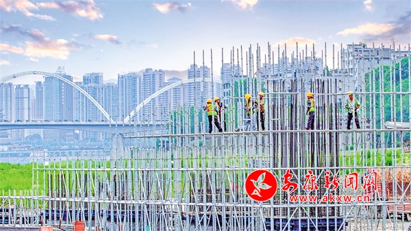 國道211安康關(guān)廟至黃洋河(環(huán)城干道東段)改建工程是我市“十四五”規(guī)劃重點(diǎn)項目。其中新關(guān)廟漢江大橋已于2022年3月22日開工,大橋全長約782米,主橋采用雙塔雙索面自錨式懸索橋,主跨180米,主塔高96米, 橋?qū)?3.5米;國道316改造長度774米, 道路紅線寬36米,雙向六車道。圖為5月19日,新關(guān)廟漢江大橋建設(shè)工地正緊張施工。 魏海安 攝