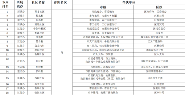 附件:市、區(qū)兩級部門、單位幫扶社區(qū)(村)周排名情況一覽表