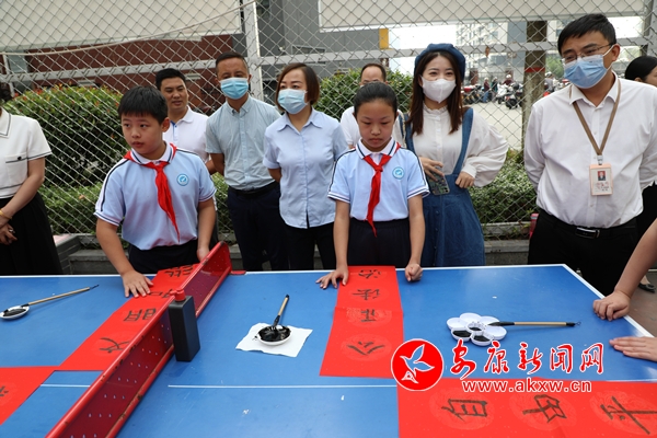簡(jiǎn)短的啟動(dòng)儀式結(jié)束后,市創(chuàng)文辦一行參觀了社區(qū)書(shū)吧,并在運(yùn)動(dòng)場(chǎng)觀看未成年人展示活動(dòng)。展示內(nèi)容主要包括現(xiàn)場(chǎng)書(shū)寫(xiě)社會(huì)主義核心價(jià)值觀、集體花樣跳繩、籃球訓(xùn)練、獨(dú)唱、個(gè)人武術(shù)和倡議書(shū)宣讀,F(xiàn)場(chǎng),同學(xué)們身著整齊的服裝,戴著鮮艷的紅領(lǐng)巾,精神煥發(fā)地來(lái)到展示場(chǎng)地。在熱烈歡快的節(jié)奏中,一張張笑臉洋溢著自信和陽(yáng)光,舉手投足間盡顯安康少年風(fēng)采。流暢的書(shū)法、炫酷的跳繩、優(yōu)美的歌聲、靈動(dòng)的棍法……孩子們的精彩表演引來(lái)一眾居民駐足圍觀,不時(shí)傳來(lái)熱烈掌聲。