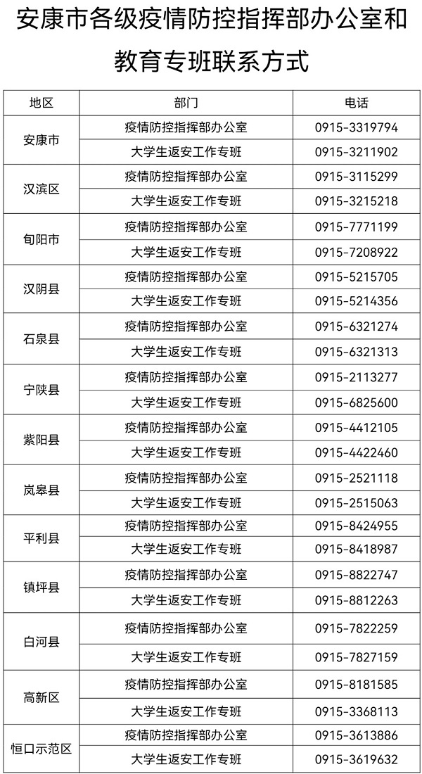 1.安康市各級疫情防控指揮部辦公室和教育專班聯(lián)系方式