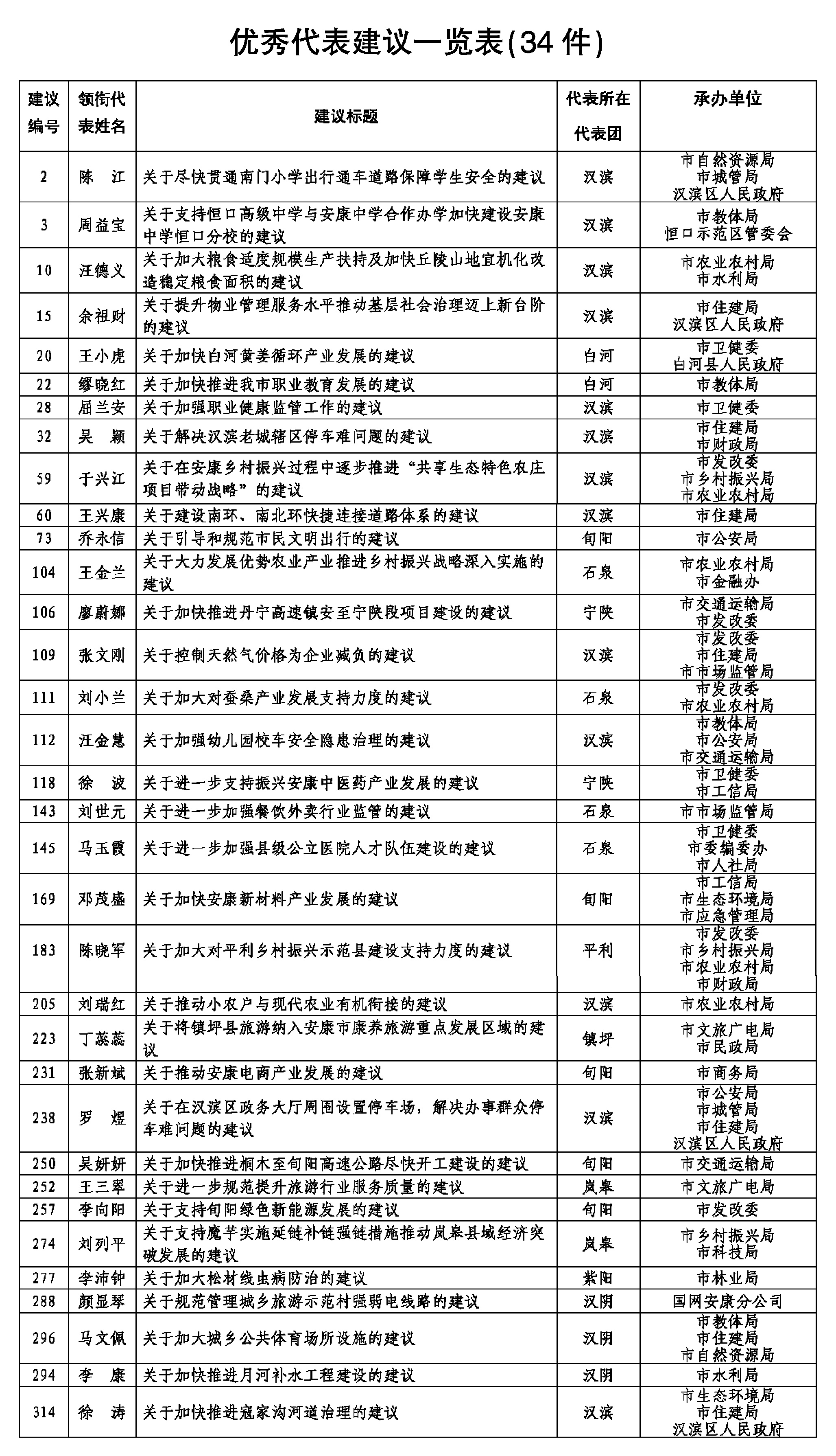 市人大代表向市級(jí)國(guó)家機(jī)關(guān)提出建議、批評(píng)和意見(jiàn),是憲法和法律賦予的民主權(quán)利,是代表人民直接參與管理國(guó)家和社會(huì)事務(wù)的有效形式。市五屆人大一次會(huì)議以來(lái),全體市人大代表深入學(xué)習(xí)貫徹習(xí)近平新時(shí)代中國(guó)特色社會(huì)主義思想和黨的二十大及中央人大工作會(huì)議精神,緊緊圍繞全市中心工作和人民群眾普遍關(guān)心關(guān)注的熱點(diǎn)難點(diǎn)問(wèn)題,依法履行職責(zé),積極建言獻(xiàn)策,共提出了321件代表建議,為推進(jìn)安康經(jīng)濟(jì)社會(huì)發(fā)展和民主法治建設(shè)凝聚了智慧、增進(jìn)了共識(shí)、貢獻(xiàn)了力量。為樹(shù)立典型、推進(jìn)工作,市人大常委會(huì)決定,對(duì)陳江等代表提出的34件優(yōu)秀代表建議予以通報(bào)表?yè)P(yáng)。