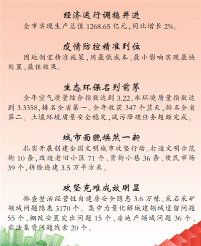 有效保障改善民生,共享新成果。完成10大類210個民生實(shí)事票決項(xiàng)目建設(shè)任務(wù)。民生財政支出300.58億元,占一般公共預(yù)算支出81.3%。城鄉(xiāng)居民人均可支配收入增長4.9%和7.3%,排名全省第2位和第1位。城鎮(zhèn)新增就業(yè)2.02萬人,開發(fā)公益性崗位4.65萬個。實(shí)施教育強(qiáng)基項(xiàng)目91個、新增學(xué)位7340個。建成市級以上健康細(xì)胞工程489個,人均預(yù)期壽命提高到78.43歲,獲評“陜西健康城市建設(shè)樣板”市。城鄉(xiāng)居民基本養(yǎng)老保險參保率達(dá)到99%、醫(yī)保參保率達(dá)到97%以上。“鄉(xiāng)村文化理事會”入選全國文化旅游領(lǐng)域改革創(chuàng)新十大案例。