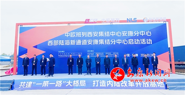 本網(wǎng)訊(記者 艾蓓)3月24日,中歐班列西安集結(jié)中心安康分中心、西部陸海新通道安康集結(jié)分中心啟動(dòng)活動(dòng)在安康東站鐵路貨場(chǎng)舉行。市委書(shū)記武文罡宣布發(fā)車,并分別與西安國(guó)際港務(wù)區(qū)黨工委委員、西安綜合保稅區(qū)專職副主任王運(yùn)動(dòng),重慶市政府口岸和物流辦公室二級(jí)巡視員陶亮共同為“中歐班列西安集結(jié)中心安康分中心”“西部陸海新通道安康集結(jié)分中心”揭牌。