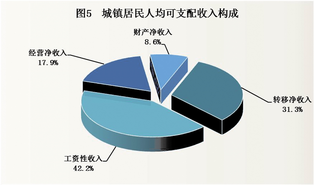 全市城鎮(zhèn)居民人均可支配收入31976元,比上年增加1480元,增長4.9%。其中,工資性收入13506元,增長5.1%,占可支配收入的比重為42.2%;經(jīng)營凈收入5728元,增長3.7%,占比17.9%;財(cái)產(chǎn)凈收入2752元,增長5.6%,占比8.6%;轉(zhuǎn)移凈收入9990元,增長4.9%,占比31.3%。