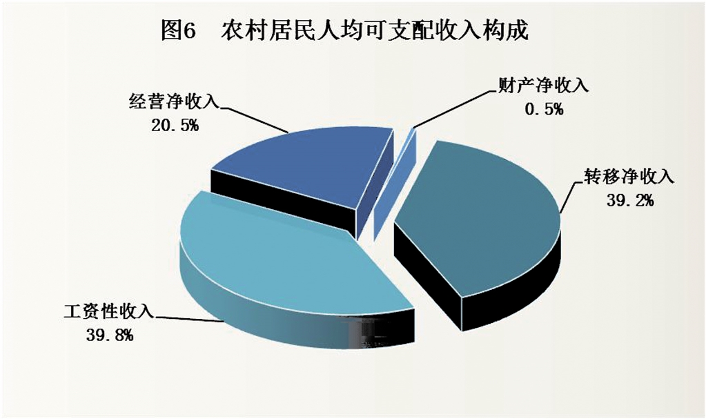 全市農(nóng)村居民人均可支配收入13368元,比上年增加904元,增長7.3%。其中,工資性收入5321元,增長7.4%,占可支配收入的比重為39.8%;經(jīng)營凈收入2745元,增長6.4%,占比20.5%;財(cái)產(chǎn)凈收入62元,增長8.8%,占比0.5%;轉(zhuǎn)移凈收入5240元,增長7.6%,占比39.2%。