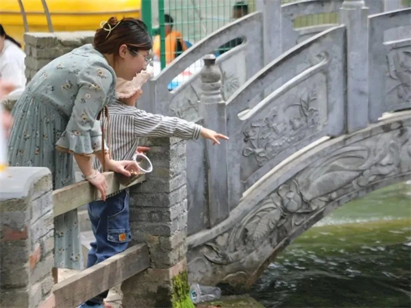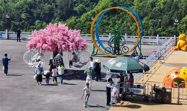 饒峰驛站的親子游樂園傳來孩子們的歡聲笑語,爛漫且文藝的月季花長廊下坐滿了游客,高空漂流的入口排滿了長隊(duì),小朋友在露營燒烤的草坪上快樂奔跑、拍照留影,成為景區(qū)內(nèi)又一道美麗的風(fēng)景線。