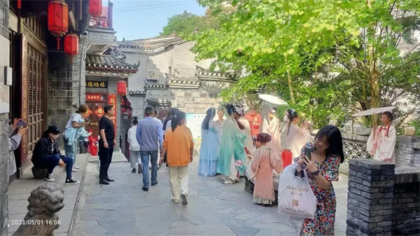 蜀河古鎮(zhèn)景區(qū)迎來客流高峰,僅假期前三天,單日接待游客超六千人。在景區(qū)各集散地,文旅中心為廣大來蜀游客提供志愿講解、旅游咨詢服務(wù);同時(shí),中心開放一樓大廳,為游客提供座椅茶水,避暑休憩及開放廁所服務(wù),全力提升游客游覽體驗(yàn),營造舒心旅游環(huán)境。中心協(xié)助蜀河鎮(zhèn)開展的“穿越千年古鎮(zhèn) 暢游詩意蜀河”系列文化活動(dòng)更是精彩紛呈,樂趣不斷,讓游客體驗(yàn)千年古鎮(zhèn)的文化魅力。