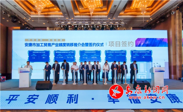 借助第13屆中國加工貿(mào)易產(chǎn)品博覽會東風(fēng),我市于5月10日下午在東莞市舉行了安康市承接加工貿(mào)易產(chǎn)業(yè)梯度轉(zhuǎn)移推介會暨簽約儀式。陜西省商務(wù)廳副廳長張文政,市委常委、常務(wù)副市長高晶華分別致辭,商務(wù)部外貿(mào)司二級巡視員蘇斌,陜西省商務(wù)廳二級巡視員昌利以及廣東省商務(wù)廳、東莞市商務(wù)局相關(guān)領(lǐng)導(dǎo)出席會議。廣東?悼毓杉瘓F(tuán)有限公司、東莞市玖月汽車貿(mào)易有限公司、廣東陜商實(shí)業(yè)有限公司等150余家企業(yè)代表參會。