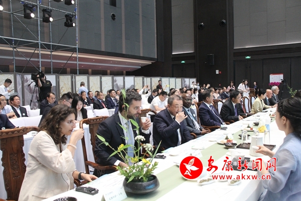 “大使品茶”為現(xiàn)場嘉賓呈現(xiàn)了一場精彩絕倫的茶文化盛宴。 茶香琴韻相伴下,與會嘉賓欣賞茶藝、體驗茶道,品茗點評了安康富硒茶中的綠茶、白茶、紅茶、秦漢古茶,以及福州茉莉花茶、湖南君山銀針等茗茶,各類茶品飄逸外觀和濃香入肺的回味給嘉賓們留下了深刻印象。