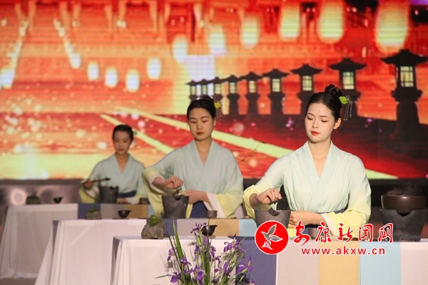 “一對紅鴉雀(喜鵲)飛起飛落叫喳喳,叫聲姐姐快燒茶,后院客來啦!……”活動以陜南民歌舞《姐姐快燒茶》開場,體現(xiàn)了家里來客要燒水泡茶的陜南民間傳統(tǒng)習(xí)俗和熱情好客的淳樸民風(fēng)。《年年有個三月三》《茉莉茶歌》《茶飄香》等豐富多彩的茶專題現(xiàn)場表演,充分詮釋了采茶制茶、沏茶飲茶的多姿形態(tài)和茶鄉(xiāng)人民的淳樸風(fēng)貌。陜西省非物質(zhì)文化遺產(chǎn)傳承項目紫陽毛尖茶傳統(tǒng)制作技藝傳承人曾朝和,以及新一代茶人龍珊,與嘉賓們分享了安康制茶匠人對古法技藝的保護與傳承。