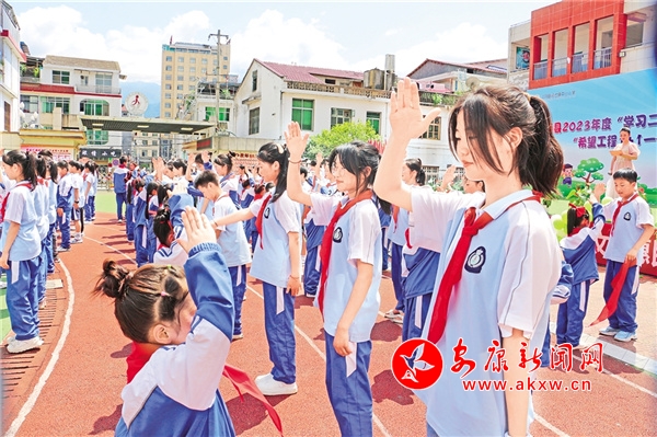 5月31日,白河縣城關鎮(zhèn)中心小學舉行慶祝“六一”兒童節(jié)活動,并為新一批少先隊員舉行了入隊儀式。 賀茂麗 攝68w安康新聞網