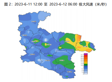2023年6月11日下午至夜間我市部分地區(qū)出現(xiàn)5~7級(jí)陣風(fēng)天氣。據(jù)統(tǒng)計(jì),2023年6月11日12時(shí)至6月12日06時(shí)全市共有20個(gè)氣象監(jiān)測(cè)站極大風(fēng)力超過(guò)6級(jí),全市最大風(fēng)速出現(xiàn)在旬陽(yáng)仙河鎮(zhèn)氣象監(jiān)測(cè)站25.7m/s,1級(jí)(2023年6月11日16時(shí)43分)。