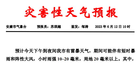 安康市氣象臺(tái)發(fā)布