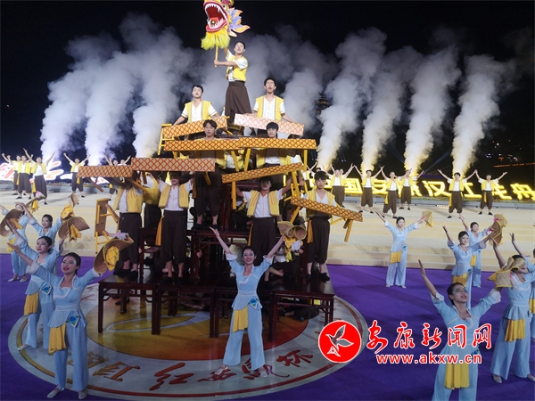 本報訊(記者 周健)6月22晚,安康龍舟文化園流光溢彩、歌舞飛揚,第二十三屆中國安康漢江龍舟節(jié)夜景演出活動拉開帷幕。
