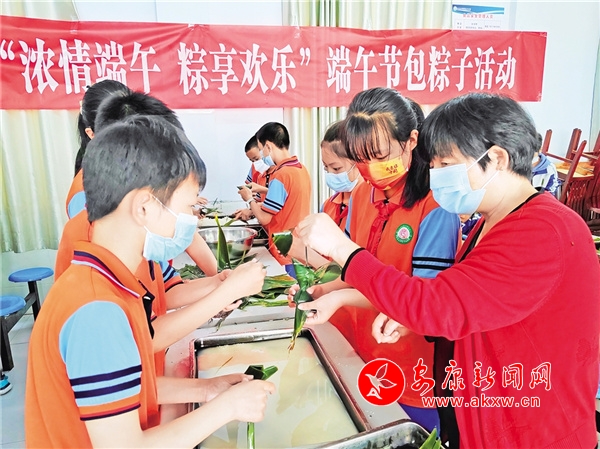 端午節(jié)前夕,石泉縣池河小學(xué)組織學(xué)生開展“濃情端午 粽享歡樂”勞動實(shí)踐體驗(yàn)活動。 賈自強(qiáng) 攝