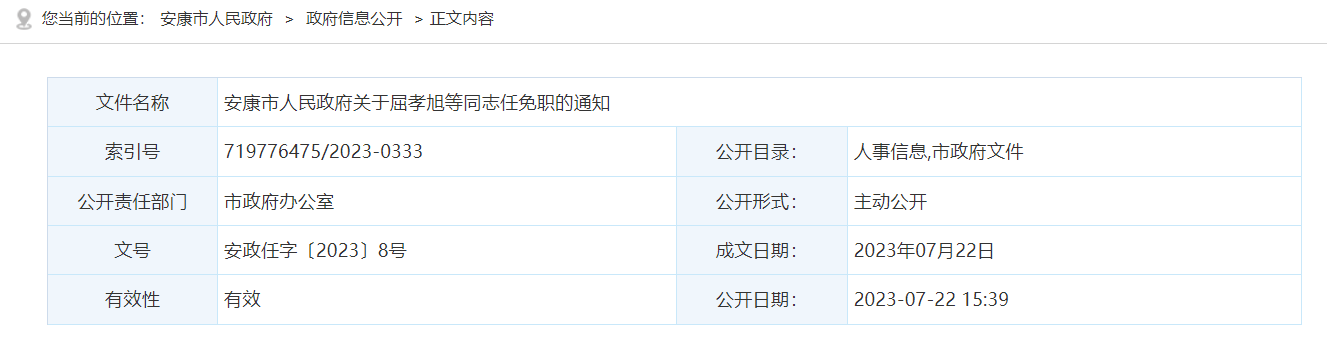 安康市人民政府關于屈孝旭等同志任免職的通知pby安康新聞網(wǎng)