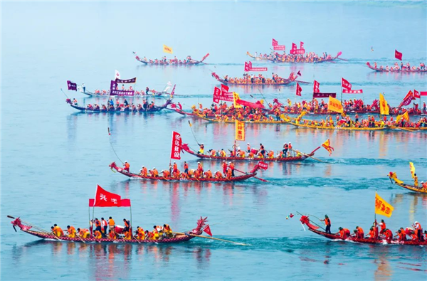 安康龍舟競(jìng)渡的場(chǎng)面有多火?從清康熙年間的《石泉縣志·風(fēng)俗》記載里可以感受一下:“鼓樂(lè)盈街,紅榴綠艾,命索虎符,饋送竟日。官僚尉具席于樓船,敦請(qǐng)長(zhǎng)令觀龍舟競(jìng)渡。男女盈岸……左顧右盼,應(yīng)接不暇。終日而后驂掉,皆游倦而言旋矣。”