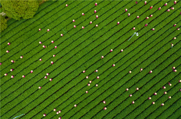 圖片杭州郊外梅家塢,茶農(nóng)在清明節(jié)前集中采集明前龍井。圖/視覺(jué)中國(guó)