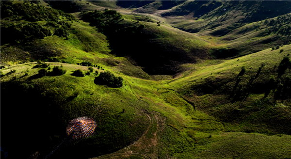 圖片2023年7月15日,陜西安康,夕陽(yáng)映照著巴山大草原斜坡。圖/視覺(jué)中國(guó)