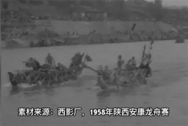 新中國(guó)成立后,安康龍舟競(jìng)渡的名氣依然在線(xiàn),西安電影制片廠建廠后拍攝的第一部電影《慶豐收賽龍舟》,“主角”就是安康賽龍舟,電影用紀(jì)實(shí)的手法,記錄了1958 年端陽(yáng)節(jié)安康城區(qū)舉辦龍舟賽的盛況,后來(lái)全國(guó)發(fā)行。