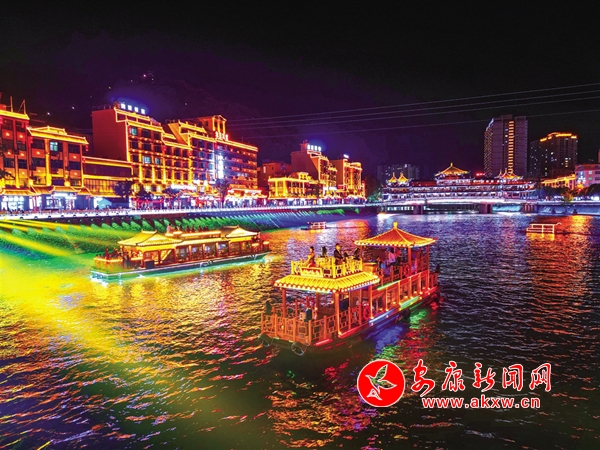 賽場(chǎng)內(nèi)氣氛熱烈,激情昂揚(yáng);賽場(chǎng)外活動(dòng)多樣,異常精彩。賽事期間,嵐皋化身“不夜城”,琉璃燈火,璀璨夜色。每天傍晚,嵐皋“硒旺”號(hào)畫(huà)舫乘著晚風(fēng)從碼頭緩緩出發(fā),在燈光輝映下流光溢彩,船上輕歌曼舞,為槳聲燈影里的嵐河平添了一道水上流動(dòng)風(fēng)景。嵐河兩岸紛紛開(kāi)展各具特色的文旅活動(dòng),“嵐河夜畫(huà)”燈光秀把縣城裝扮得斑斕夢(mèng)幻,花燈祈福、龍舟競(jìng)渡等水上項(xiàng)目供游客參與體驗(yàn),cosplay、漢服、西游等主題巡游,處處飄蕩著歡聲笑語(yǔ),各地游客在欣賞賽事的同時(shí),享受到更多豐富多彩的娛樂(lè)生活。拍照、直播、發(fā)朋友圈,據(jù)不完全統(tǒng)計(jì),賽事及相關(guān)活動(dòng)吸引860余萬(wàn)網(wǎng)民圍觀。