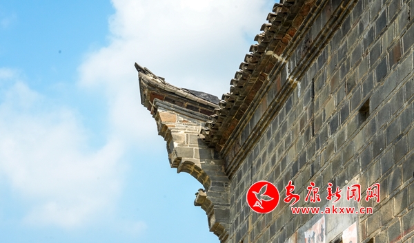 西院重建于清咸豐初年,是一個(gè)“四水到堂”格局的四合院,上房五間,庭房五間,廂房左右各一間。院外大門上方嵌砌一座彩色大牌坊,牌坊上裝飾著各種生動(dòng)逼真的人物、鳥獸花果及相應(yīng)的花邊圖案,中間鑲嵌“燕翼治謀”石額,極為美觀。“燕翼詒謀”一詞,比喻能庇佑造福后代的祖先。典出《詩(shī)經(jīng)·大雅·文王有聲》:“武王豈不仕,詒厥孫謀,以燕翼子。”房頂為硬山頂,房頂上橫豎呈正方形的四條屋脊均為雕花磚、鏤空磚砌成,兩端均有揚(yáng)頭豎鬃、張口伸舌的龍頭。山墻碼頭上有龍紋、花鳥淺浮雕彩繪圖案。院內(nèi)門窗、檐、挑等木質(zhì)構(gòu)件,均有技藝精湛的人物、鳥獸、花果等雕刻。