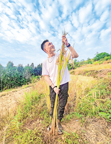 這是我省首例大面積試種成功的“巨型稻”,經(jīng)測(cè)量,平均株高1.6米,部分株高達(dá)1.8米,穗長(zhǎng)約28厘米,是普通水稻的兩倍。“‘巨型稻’一個(gè)穗子有315粒谷子,普通水稻一個(gè)穗子只有171粒。普通水稻在我們這溝田里種植,一畝地產(chǎn)量不到400公斤,但‘巨型稻’每畝產(chǎn)量可達(dá)600公斤以上。今年試種的90畝地,總產(chǎn)量達(dá)到5萬(wàn)公斤。”盤(pán)龍村黨支部書(shū)記顏顯琴難掩內(nèi)心的激動(dòng)。