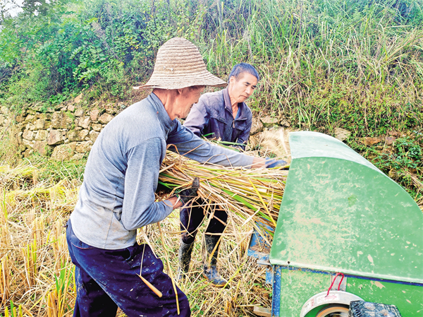 本網(wǎng)訊(記者 楊遷偉 孫妙鴻)風(fēng)吹稻田千重浪,又到一年秋收時(shí)。10月13日,記者來(lái)到漢陰縣蒲溪鎮(zhèn)盤(pán)龍村試種的90余畝“巨型稻”試驗(yàn)田,層層疊疊的稻田一片金黃,一株株高大的“巨型稻”傲然挺立,“個(gè)頭”明顯比旁邊稻田里普通水稻高出許多,長(zhǎng)而飽滿(mǎn)的稻穗低垂著迎風(fēng)搖擺,村民們正搶抓晴好天氣,加緊收割。