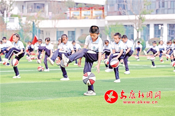 安康高新區(qū)第三小學(xué)的花式籃球展示。