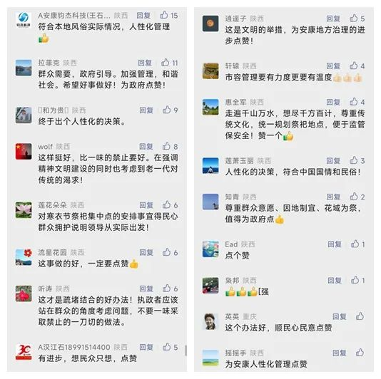 從前期“需要十幾萬元的祭祀場地費(fèi)用”,到“幾乎不花錢”地設(shè)置臨時(shí)集中祭祀點(diǎn)位,既滿足了群眾祭祀需求,又維護(hù)了城市環(huán)境衛(wèi)生和文明形象,還贏得了廣泛贊譽(yù)和民心。“人性化的管理”“暖民心順民意”“城市管理有溫度”……在微信公眾號留言區(qū)、抖音評論區(qū),市民對此舉高度認(rèn)可,好評一片,反響強(qiáng)烈,也為今后祭祀節(jié)點(diǎn)在中心城區(qū)能夠形成文明祭祀之風(fēng)開了一個(gè)好頭。