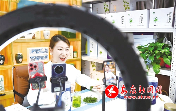 “平利漫山遍野都有絞股藍(lán),絞股藍(lán)有‘東方神草’之稱,含有豐富的皂苷、黃酮、多糖類化合物,富有鋅、硒等多種微量元素,對人體有諸多好處。”11月5日,在第六屆中國進(jìn)出口博覽會陜西館,平利縣富硒堂茶業(yè)有限公司負(fù)責(zé)人王秀梅向客商推薦介紹平利絞股藍(lán)。與此同時(shí),在位于平利縣數(shù)字經(jīng)濟(jì)產(chǎn)業(yè)園里的公司直播間,員工成云正在進(jìn)行著絞股藍(lán)產(chǎn)品的直播售賣。