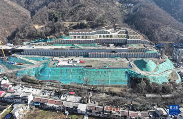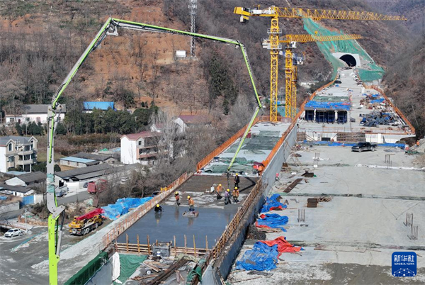 △ 1月26日拍攝的中鐵七局集團(tuán)西康高鐵3標(biāo)段項目施工現(xiàn)場(無人機照片)。新華社記者 邵瑞 攝