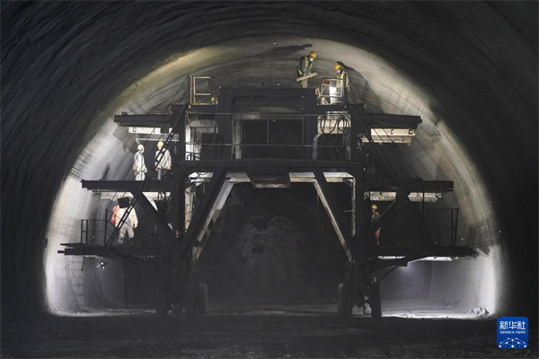 △ 1月26日,在長達(dá)13.3公里的西康高鐵秦嶺九天山隧道內(nèi),中鐵七局集團(tuán)的工人在開挖面作業(yè)。新華社記者 邵瑞 攝