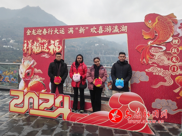 在游覽瀛湖風(fēng)景區(qū)時,留學(xué)生們陶醉于湖光山景。4名留學(xué)生在景區(qū)打卡地盡情打卡拍照,定格最美的瞬間,并通過視頻與家人連線,讓家人欣賞安康秀美的山水、美麗的鄉(xiāng)村、鄉(xiāng)村振興下村民的美好生活。游船穿梭在湖中,湖景和浮橋倒映在水中,王吉感嘆:“這么大的湖,這么清的水,真是漂亮極了。”