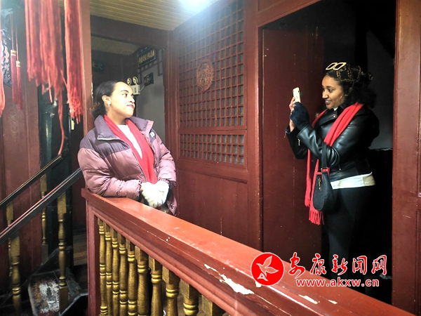 “千門萬戶曈曈日,總把新桃換舊符。”中國春節(jié),是從貼春聯(lián)開始的,4名留學(xué)生來到老城街道辦土地樓一處老房子,在主人的熱情接待下,他們參觀了這座始建于清末民初的全磚木結(jié)構(gòu)古建筑。留學(xué)生們被老房子中的一草一木所吸引,感受著歲月的痕跡和安康民居的獨特韻味。“真的很難想象,這棟建筑有超過150年的歷史,這是怎么建造的呢?”來自埃塞俄比亞的留學(xué)生梅昕對這樣的古建筑充滿了好奇。在社區(qū)工作人員的幫助下,留學(xué)生們?yōu)槔险合屡f桃符,貼上新春聯(lián),共同體驗了春節(jié)的“辭舊迎新”之意。