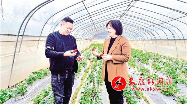 雙乳鎮(zhèn)黨委書(shū)記柳楊(右)走進(jìn)草莓園