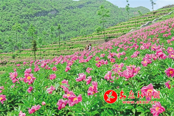 每年五月,白河縣安福村的千畝芍藥、牡丹競相綻放,爭奇斗艷,既是當(dāng)?shù)厝罕娭赂辉鍪盏漠a(chǎn)業(yè)項目,又是吸引游客的一大亮點(diǎn)。