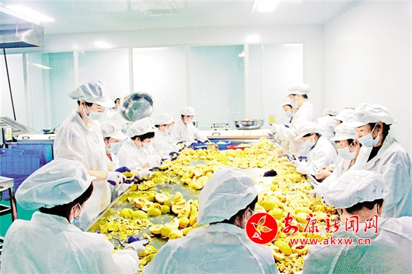 中廠鎮(zhèn)石梯社區(qū)木瓜產(chǎn)業(yè)園區(qū)里工人們?yōu)槟竟先テぁM踯?攝