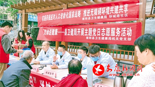 紫陽縣城關鎮(zhèn)環(huán)城路社區(qū)與紫陽縣衛(wèi)健局聯(lián)合開展“義診送健康”主題黨日活動。儲茂銀 攝
