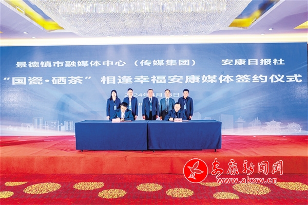 △安康日報社與景德鎮(zhèn)市融媒體中心(傳媒集團)舉行“國瓷·硒茶”相逢幸福安康媒體簽約儀式