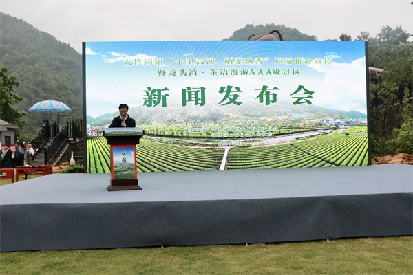 發(fā)布會上,大竹園鎮(zhèn)人民政府鎮(zhèn)長鄭濤向大家介紹了大竹園鎮(zhèn)茶旅融合及龍頭灣茶語漫游景區(qū)有關情況,龍頭灣茶語漫游景區(qū)形象大使單東培做了景區(qū)推介。
