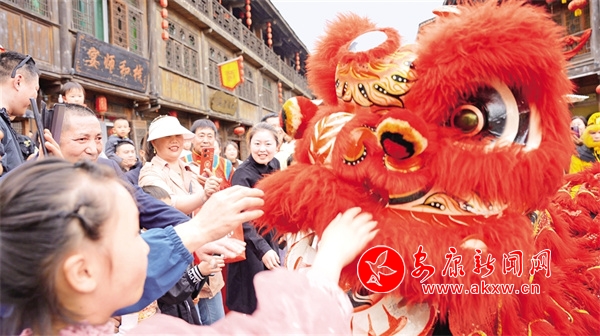 “五一”小長(zhǎng)假期間,漢陰縣雙河口古鎮(zhèn)景區(qū)吸引了大批游客前來(lái)游玩打卡。圖為游人欣賞舞獅表演。王建霞 攝ekf安康新聞網(wǎng)