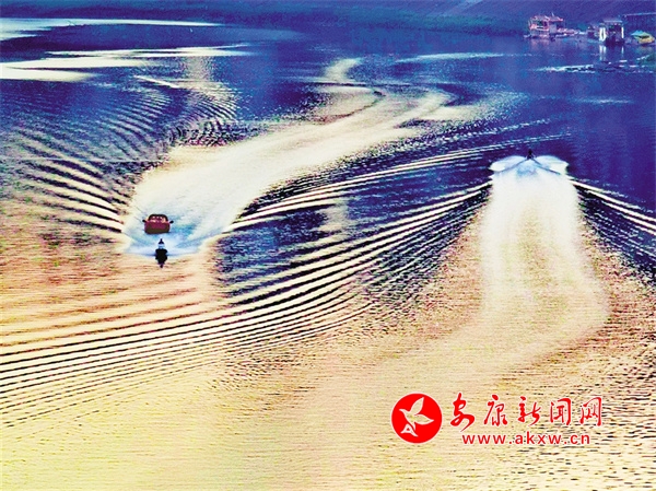 “五一”小長(zhǎng)假期間,快艇在漢江安康城區(qū)東壩段載著游客往返穿梭,成為一道獨(dú)特的風(fēng)景。吳定國(guó) 攝ekf安康新聞網(wǎng)