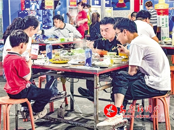 在店里工作多年的李阿姨,見證了張家麻辣燙店發(fā)展的印記。“我就是住在這附近的,想著離家近,工資待遇也還可以,就干了這么些年。串串的鍋底底料都是自己炒,買的花椒辣椒原材料也都是質(zhì)量很不錯(cuò)的,基本上顧客提的意見要求我們也都會(huì)給老板說,所以大家也都愿意來。顧客除了周邊的街坊鄰居,城里的,還有各個(gè)縣上的。我也是看著這家店名氣越來越大,尤其在疫情管控放開后,我們就再也沒有閑下來過,每天上班后,就是洗菜、串菜,一直要忙到晚上12點(diǎn)以后。雖然很累,但是我們的工資也漲了,一個(gè)月能拿到4000元左右,也算是不錯(cuò)了。”像李阿姨這樣的員工,張家麻辣燙店里有十幾個(gè),因?yàn)樯鈱?shí)在太好,一晚上80桌的翻臺(tái)率都在3次以上。
