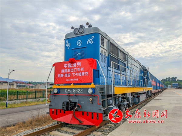 10時40分,隨著一聲火車機車汽笛轟鳴,滿載著110輛商用汽車的46050次貨運專列從安康市恒口火車站駛出,經西安國際港站轉運,再由滿洲里鐵路口岸出境,預計13天后抵達俄羅斯下卡姆斯克,全程運行6346公里。我市首趟中歐班列商用車出口專列正式開行,既是全市大力發(fā)展現(xiàn)代物流產業(yè)、加快建設全國綜合交通樞紐的里程碑,也是著力擴大對內對外開放、主動融入和服務“一帶一路”發(fā)展新格局的重要突破,同時標志著安康無水港正式投用,無水港多式聯(lián)運平臺北向大通道正式貫通。