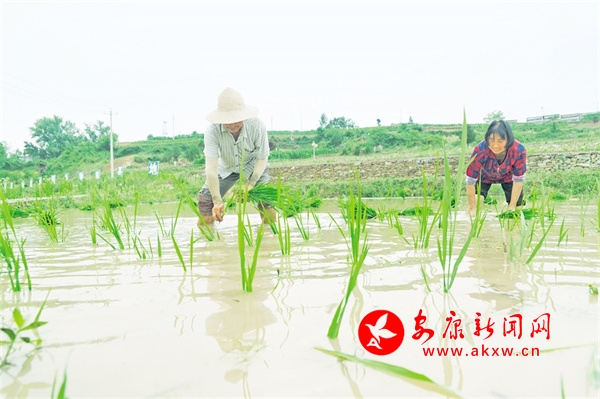 圖二:安康市恒口示范區(qū)袁莊村村民在進(jìn)行水稻秧苗移栽。趙華斌 攝RSx安康新聞網(wǎng)