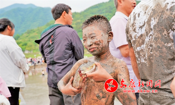 圖五: 孩子向游客展示抓魚體驗成果。王韜 攝RSx安康新聞網(wǎng)