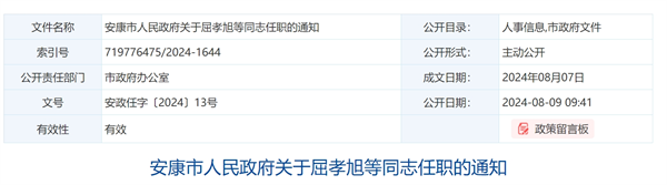 屈孝旭同志為市發(fā)展研究中心(市政府網(wǎng)站)副主任,原試任職務隨機構改革自行免去;